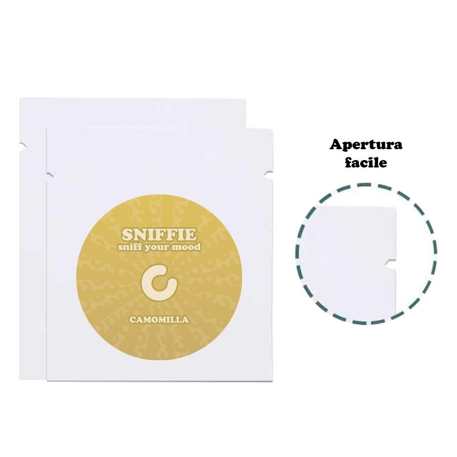 confezione da 5 Sniffie Camomilla, in bustina termosaldata singola + bustina richiudibile